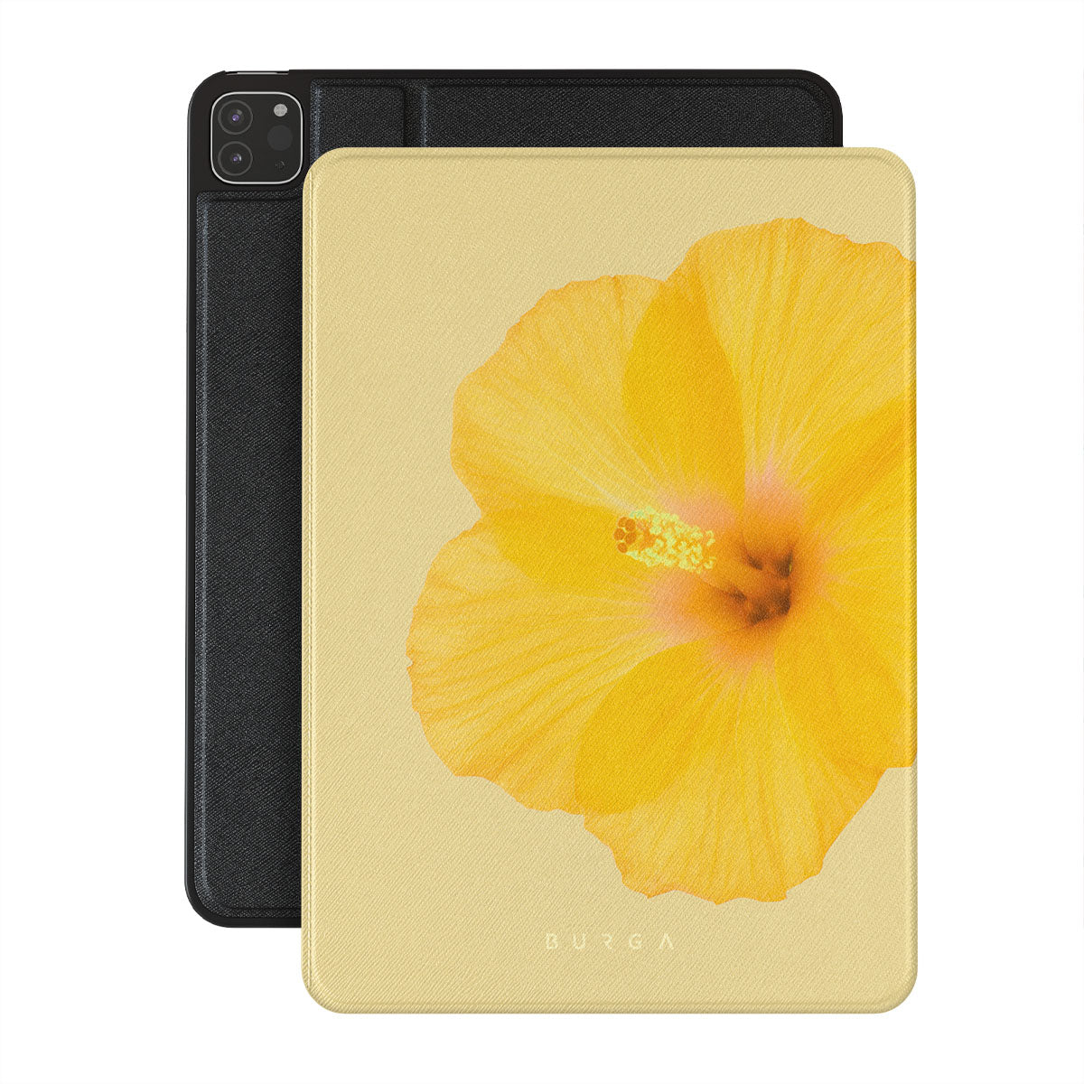 Our Hibiscus iPad Pro 11 (2nd/1st Gen) folio case features a striking design with a large, vibrant yellow hibiscus flower on a matching yellow background. This tropical flower pattern exudes a sense of warmth and exotic beauty, perfect for those who love nature-inspired and floral aesthetics.