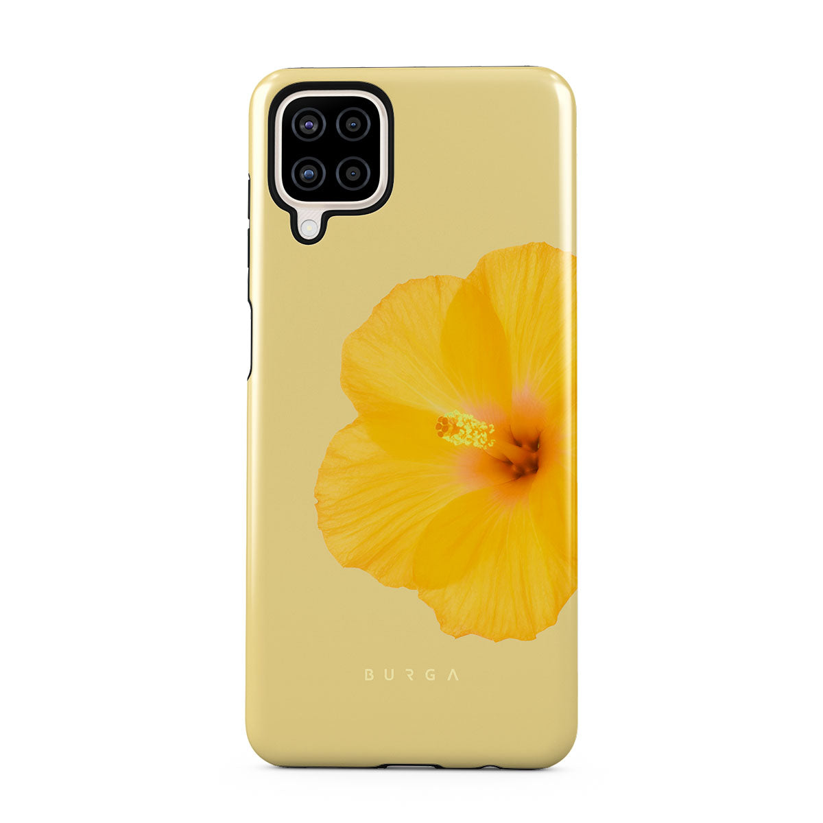 Our bright yellow Samsung Galaxy A12 4G phone case features bold, beautiful flowers that evoke a sense of nostalgia and happiness. This cheerful floral design captures the essence of joyful moments, making your device a reminder of sunny memories. Perfect for brightening up your day.
