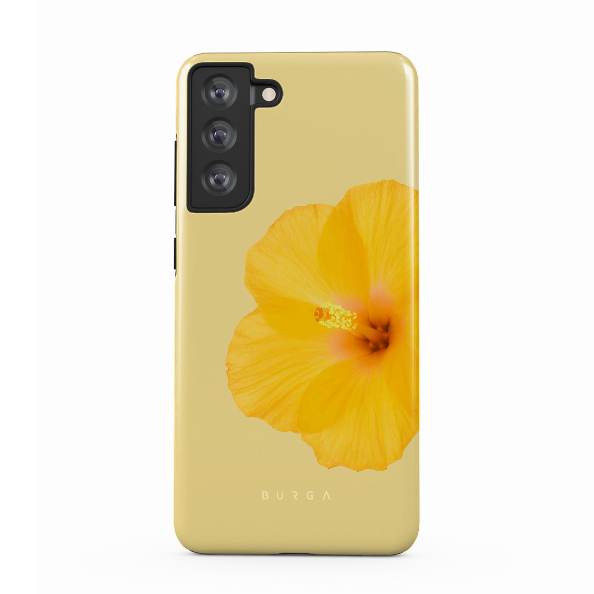 Our bright yellow Samsung Galaxy S21 FE phone case features bold, beautiful flowers that evoke a sense of nostalgia and happiness. This cheerful floral design captures the essence of joyful moments, making your device a reminder of sunny memories. Perfect for brightening up your day.