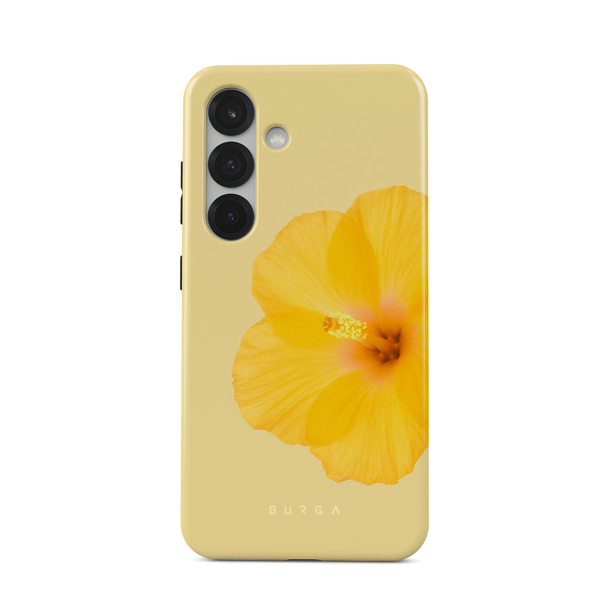 Our bright yellow Samsung Galaxy S25 Plus phone case features bold, beautiful flowers that evoke a sense of nostalgia and happiness. This cheerful floral design captures the essence of joyful moments, making your device a reminder of sunny memories. Perfect for brightening up your day.