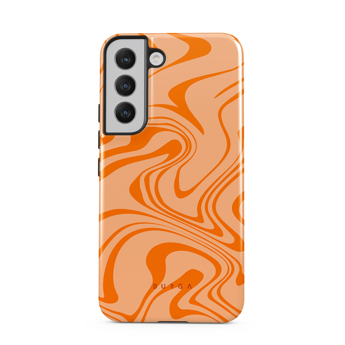 Add some retro vibes to your modern device with our High Vibrations Samsung Galaxy S22 phone case. Bright orange allows the darker color swirls to release all that groove energy! This cheerful design is a true showstopper.