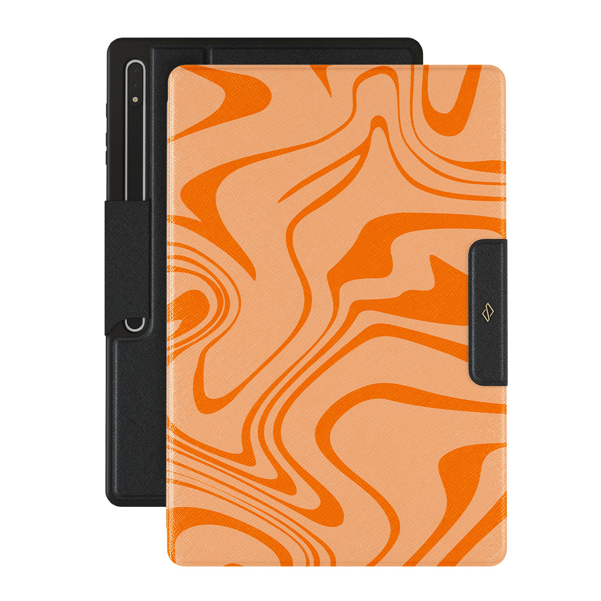 Add some retro vibes to your modern device with our High Vibrations Samsung Galaxy Tab S8 Ultra folio case. Bright orange allows the darker color swirls to release all that groove energy! This cheerful design is a true showstopper.