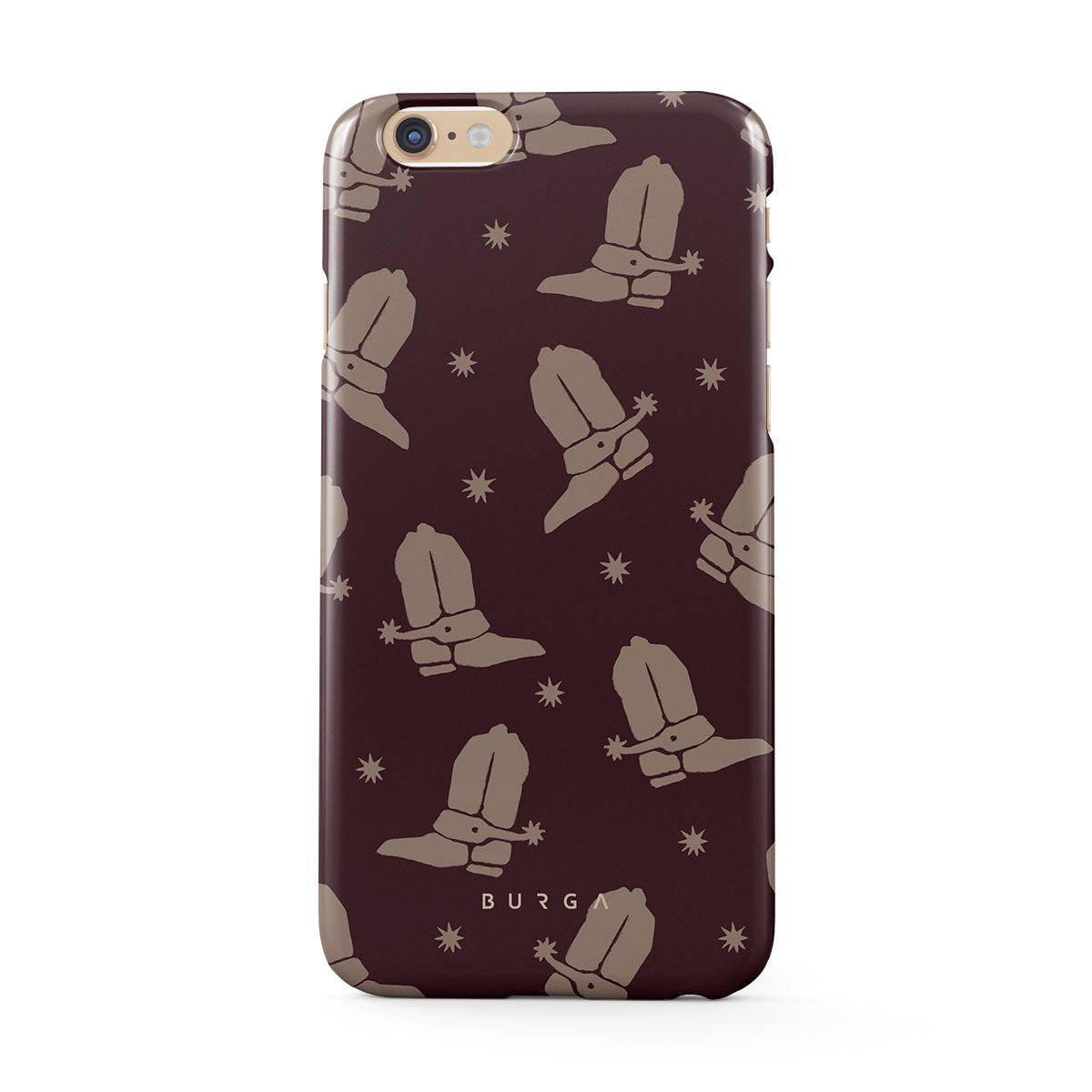 Say Howdy to this charming iPhone 6 / 6S phone case design. Cowboy boots and stars dance across a deep brown background, celebrating the essence of western life. Perfect for those who embrace their free spirit.