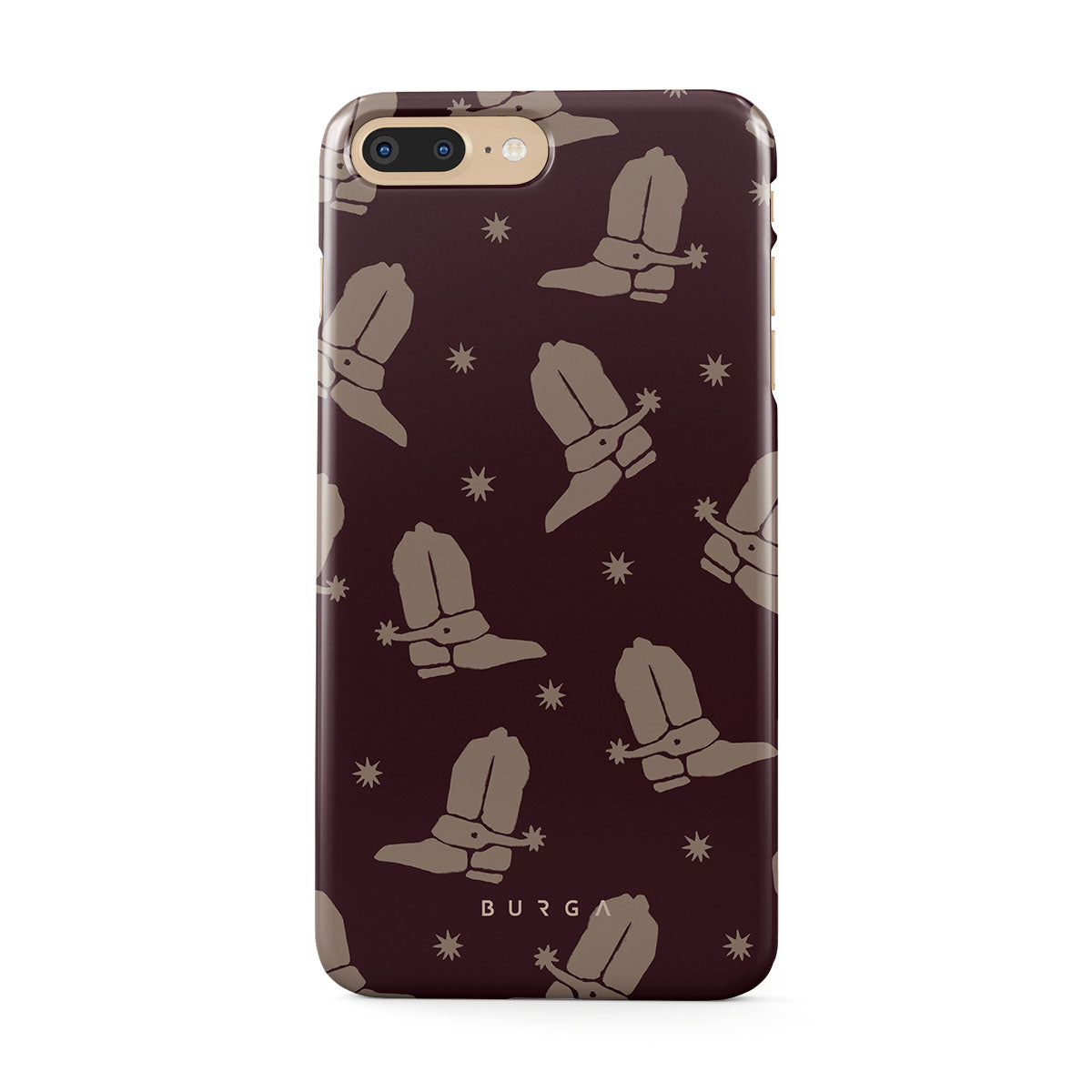 Say Howdy to this charming iPhone 7 Plus / 8 Plus phone case design. Cowboy boots and stars dance across a deep brown background, celebrating the essence of western life. Perfect for those who embrace their free spirit.