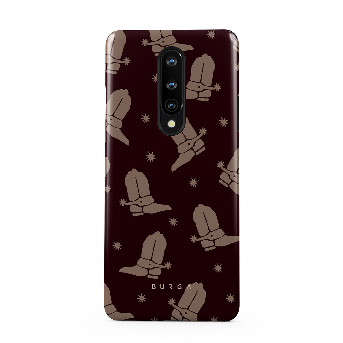 Say Howdy to this charming OnePlus 8 phone case design. Cowboy boots and stars dance across a deep brown background, celebrating the essence of western life. Perfect for those who embrace their free spirit.