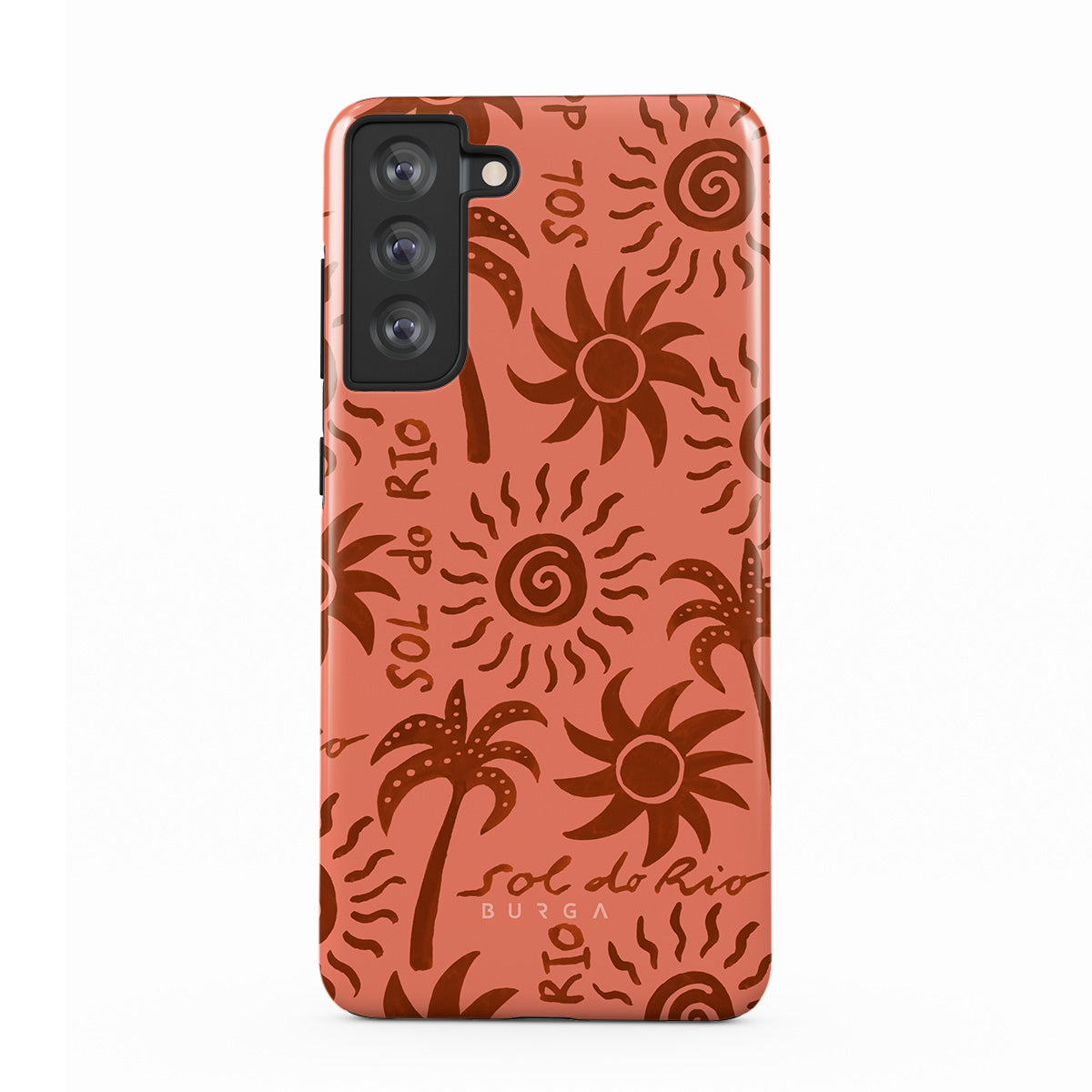 Drawn in the sand with someone’s leftover popsicle stick. Scribbly symbols and a sunburned palette that whisper “let’s not go back yet.” That's the Ipanema Samsung Galaxy S21 FE phone case design.