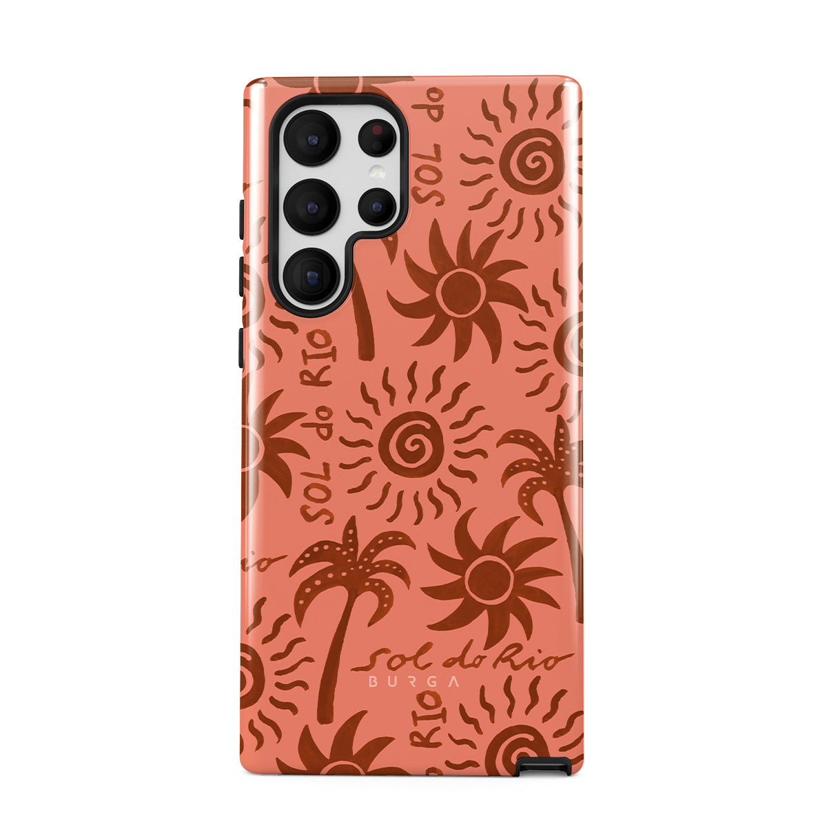 Drawn in the sand with someone’s leftover popsicle stick. Scribbly symbols and a sunburned palette that whisper “let’s not go back yet.” That's the Ipanema Samsung Galaxy S22 Ultra phone case design.