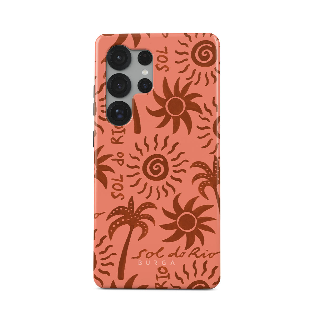 Drawn in the sand with someone’s leftover popsicle stick. Scribbly symbols and a sunburned palette that whisper “let’s not go back yet.” That's the Ipanema Samsung Galaxy S25 Ultra phone case design.