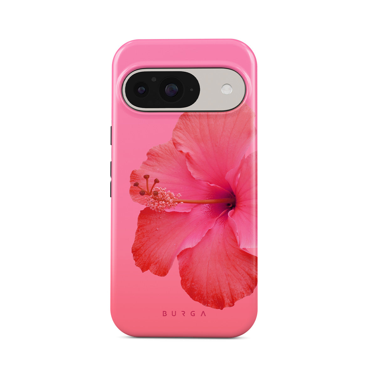Our Island Girl Google Pixel 10 Pro XL phone case design bursts with the fiery red of a hibiscus in full bloom against a dreamy pink backdrop. Perfect for those who embody the spirit of a sun-kissed island retreat.