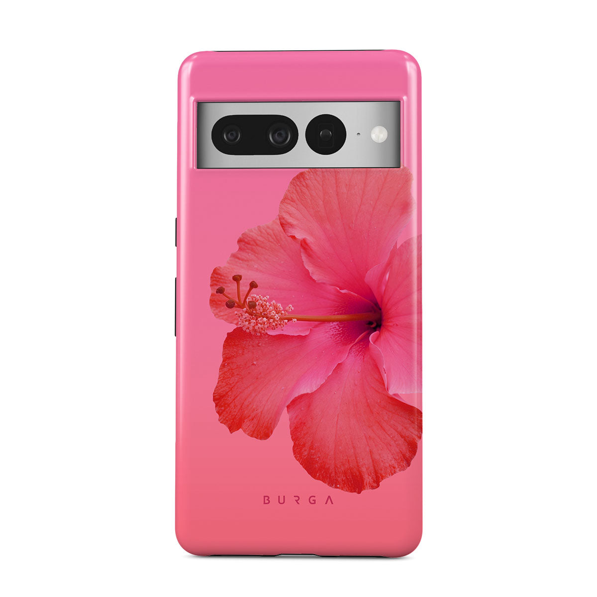 Our Island Girl Google Pixel 7 Pro phone case design bursts with the fiery red of a hibiscus in full bloom against a dreamy pink backdrop. Perfect for those who embody the spirit of a sun-kissed island retreat.