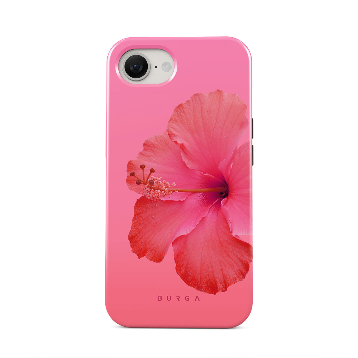 Our Island Girl iPhone 16e phone case design bursts with the fiery red of a hibiscus in full bloom against a dreamy pink backdrop. Perfect for those who embody the spirit of a sun-kissed island retreat.
