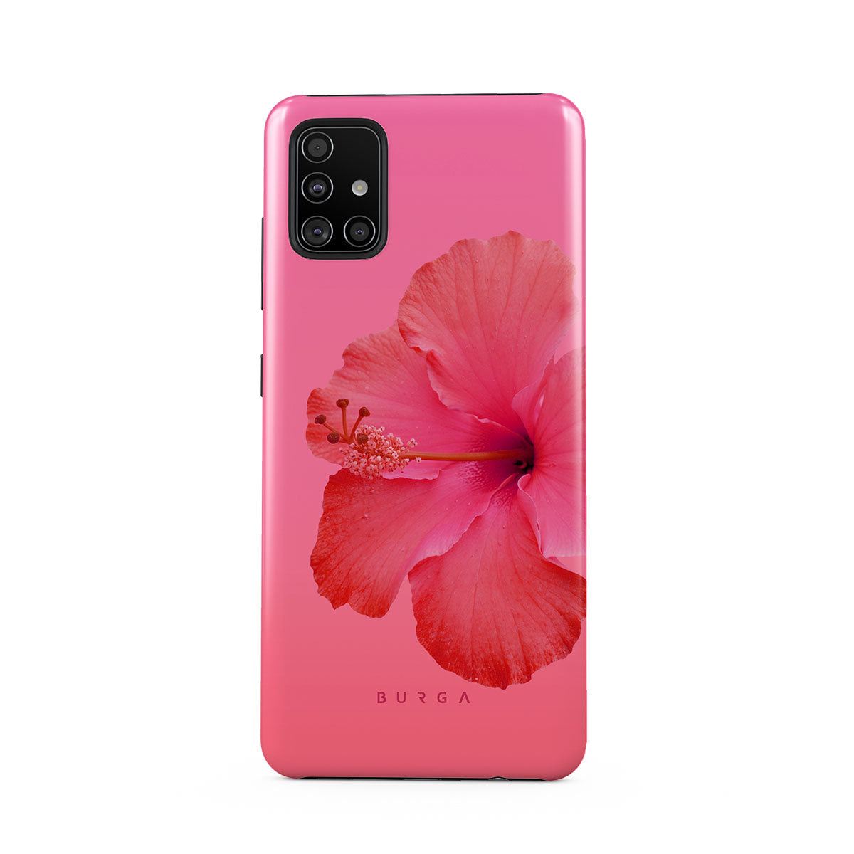 Our Island Girl Samsung Galaxy A51 4G phone case design bursts with the fiery red of a hibiscus in full bloom against a dreamy pink backdrop. Perfect for those who embody the spirit of a sun-kissed island retreat.