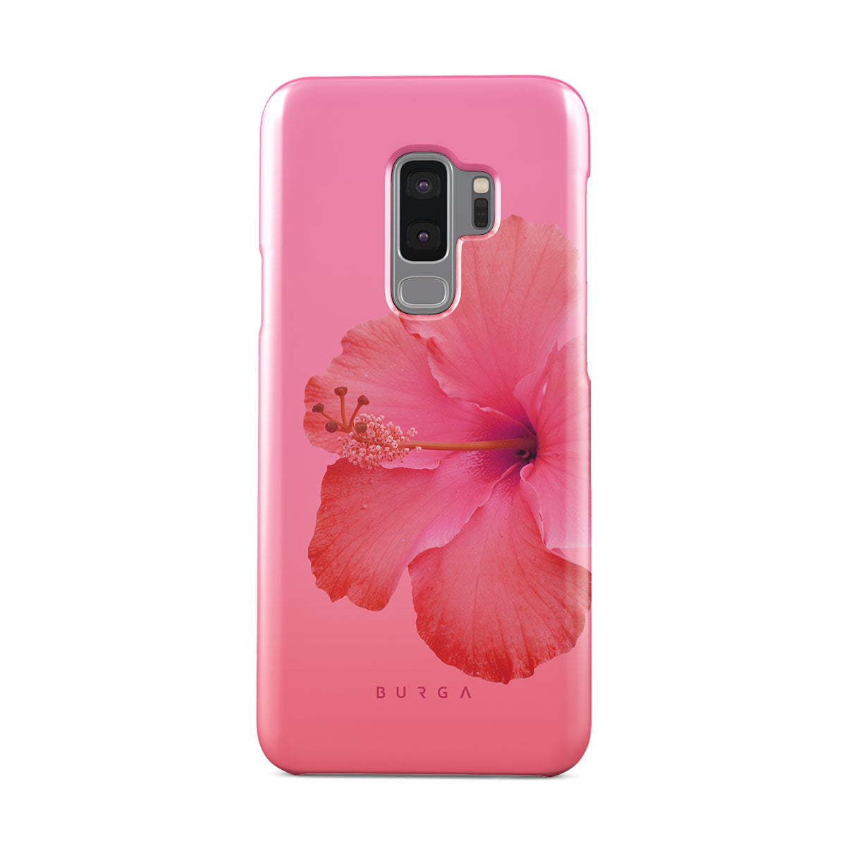 Our Island Girl Samsung Galaxy S9 Plus phone case design bursts with the fiery red of a hibiscus in full bloom against a dreamy pink backdrop. Perfect for those who embody the spirit of a sun-kissed island retreat.