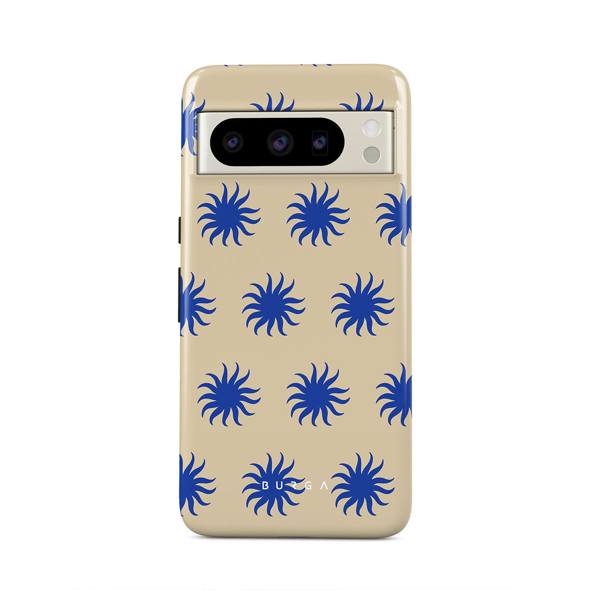 Immerse yourself in the vibrant spirit of the tropics with our La Playa Google Pixel 8 Pro phone case. This design boasts a warm, sandy beige base highlighted by striking blue motifs, reminiscent of the breezy Caribbean islands. It’s a stylish celebration of coastal beauty.