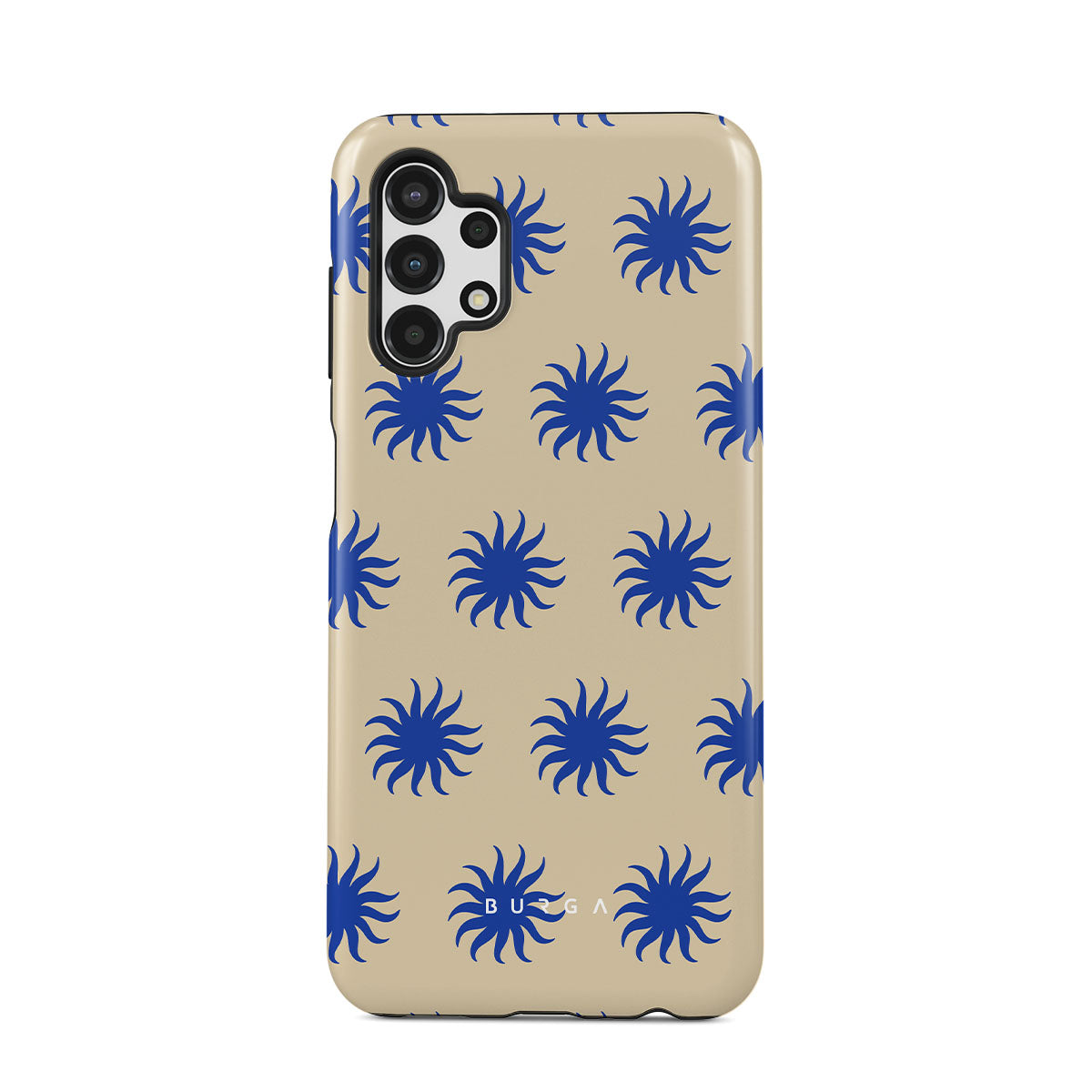 Immerse yourself in the vibrant spirit of the tropics with our La Playa Samsung Galaxy A13 4G phone case. This design boasts a warm, sandy beige base highlighted by striking blue motifs, reminiscent of the breezy Caribbean islands. It’s a stylish celebration of coastal beauty.