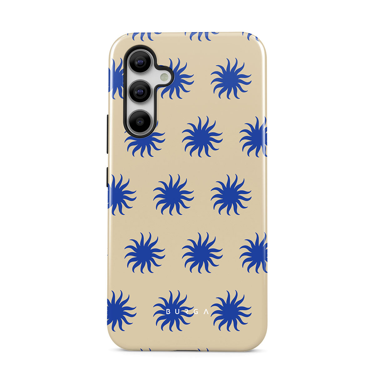 Immerse yourself in the vibrant spirit of the tropics with our La Playa Samsung Galaxy A54 phone case. This design boasts a warm, sandy beige base highlighted by striking blue motifs, reminiscent of the breezy Caribbean islands. It’s a stylish celebration of coastal beauty.