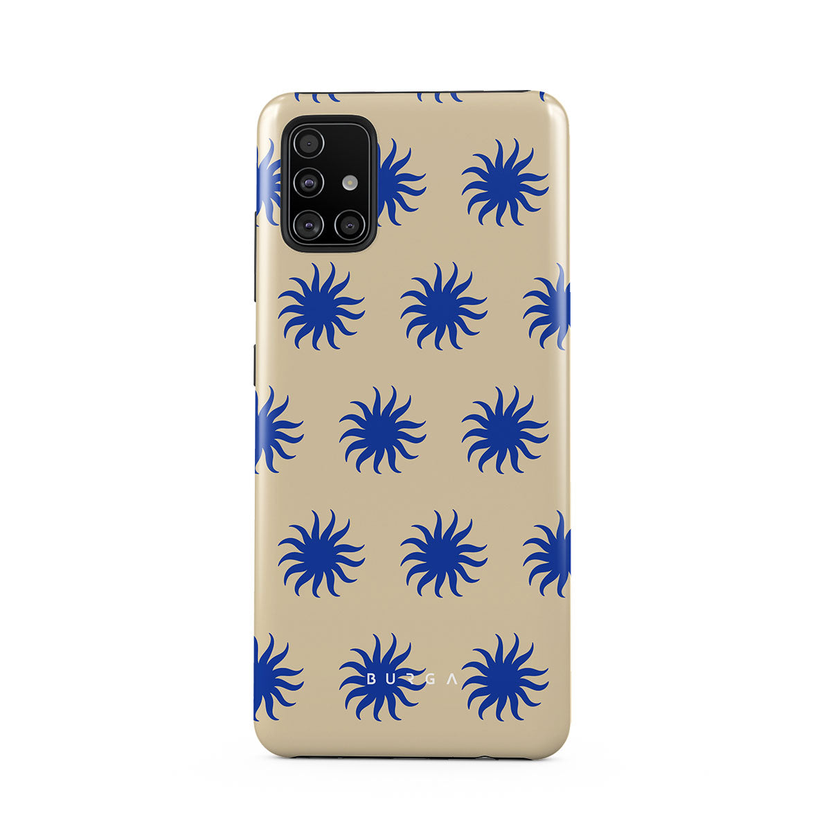 Immerse yourself in the vibrant spirit of the tropics with our La Playa Samsung Galaxy A71 4G phone case. This design boasts a warm, sandy beige base highlighted by striking blue motifs, reminiscent of the breezy Caribbean islands. It’s a stylish celebration of coastal beauty.