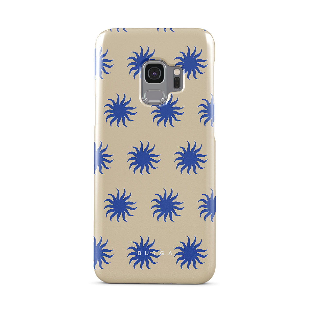 Immerse yourself in the vibrant spirit of the tropics with our La Playa Samsung Galaxy S9 phone case. This design boasts a warm, sandy beige base highlighted by striking blue motifs, reminiscent of the breezy Caribbean islands. It’s a stylish celebration of coastal beauty.