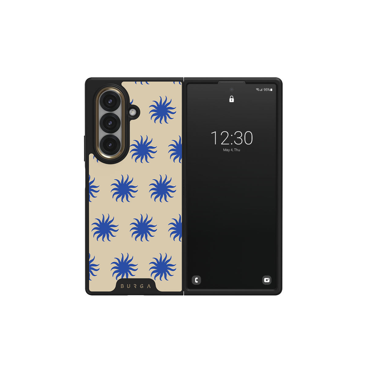 Immerse yourself in the vibrant spirit of the tropics with our La Playa Samsung Galaxy Z Fold 7 phone case. This design boasts a warm, sandy beige base highlighted by striking blue motifs, reminiscent of the breezy Caribbean islands. It’s a stylish celebration of coastal beauty.
