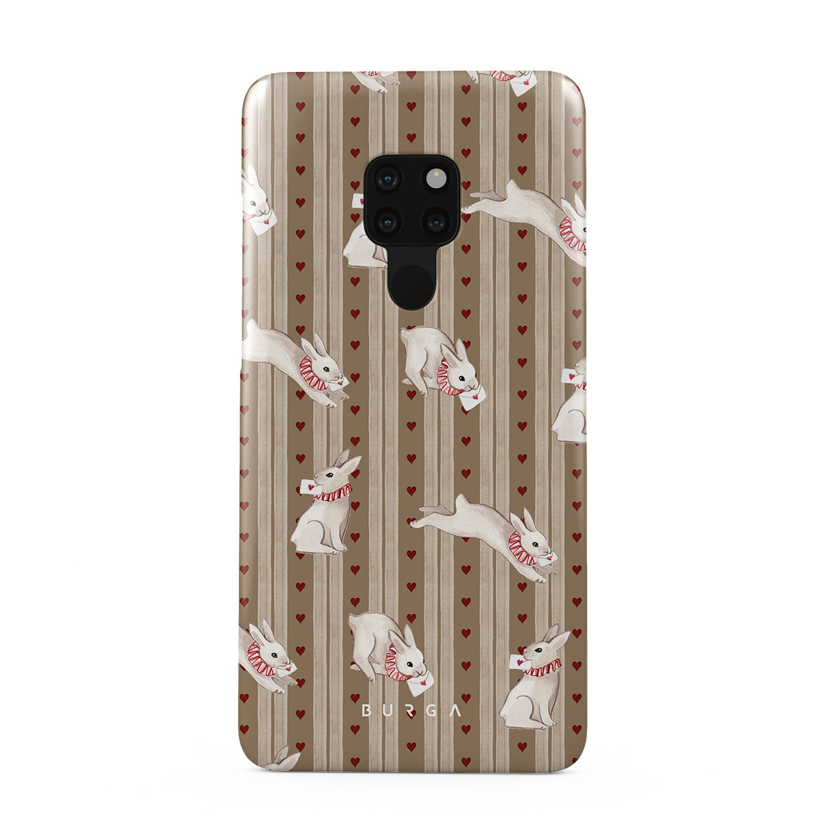 The Late Again Huawei Mate 20 phone case design is a love letter lost in time—scattered hearts, hurried notes, and white rabbits racing against a clock that refuses to be tamed. Sent, but never received. Read, but never answered. Always running, always chasing, always just a moment too late.