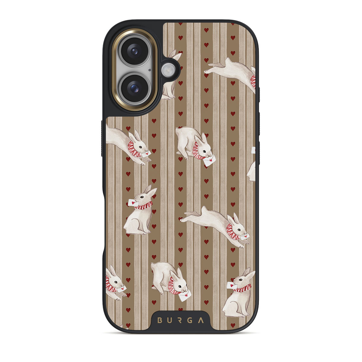 The Late Again iPhone 16 phone case design is a love letter lost in time—scattered hearts, hurried notes, and white rabbits racing against a clock that refuses to be tamed. Sent, but never received. Read, but never answered. Always running, always chasing, always just a moment too late.