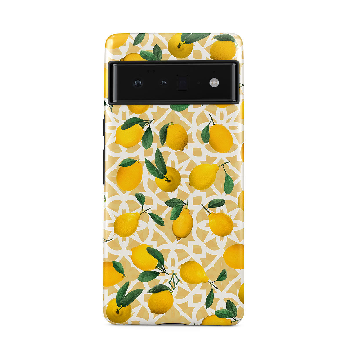 Freshly squeezed, freshly made – drops in water, in your tea, and the scent that gives the energy for the rest of the day. Feel that energy with our Lemon Juice Google Pixel 6 Pro phone case made with a bright yellow lemons pattern that catches the eye. Let your phone become an energy beacon for your day!