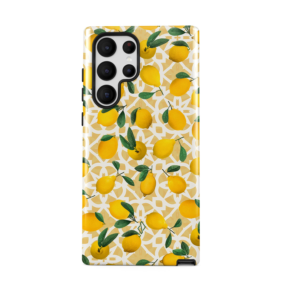 Freshly squeezed, freshly made drops in water, in your tea, and the scent that gives the energy for the rest of the day. Feel that energy with our Lemon Juice Samsung Galaxy S22 Ultra phone case made with a bright yellow lemons pattern that catches the eye. Let your phone become an energy beacon for your day!