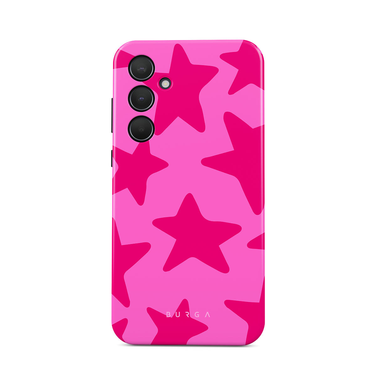 Indulge in a heavenly playground where stars engage in a captivating cosmic game of tag. Enjoy a celestial carnival and fashion fantasy dipped in a sugar-rush of pink. Live the Paradise City dream with our Let's Go Party Samsung Galaxy A35 phone case and flaunt your style.