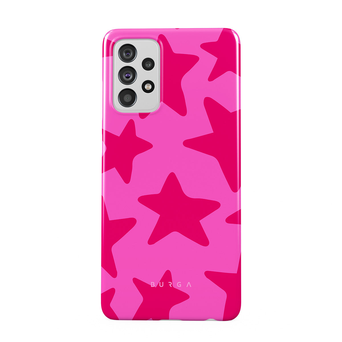 Indulge in a heavenly playground where stars engage in a captivating cosmic game of tag. Enjoy a celestial carnival and fashion fantasy dipped in a sugar-rush of pink. Live the Paradise City dream with our Let's Go Party Samsung Galaxy A72 4G / 5G phone case and flaunt your style.