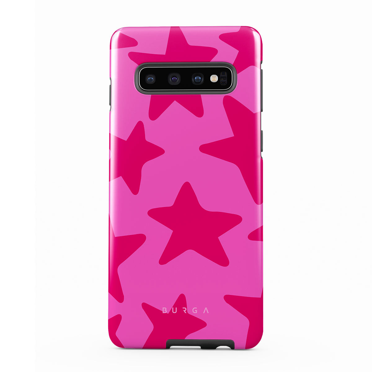 Indulge in a heavenly playground where stars engage in a captivating cosmic game of tag. Enjoy a celestial carnival and fashion fantasy dipped in a sugar-rush of pink. Live the Paradise City dream with our Let's Go Party Samsung Galaxy S10 4G phone case and flaunt your style.
