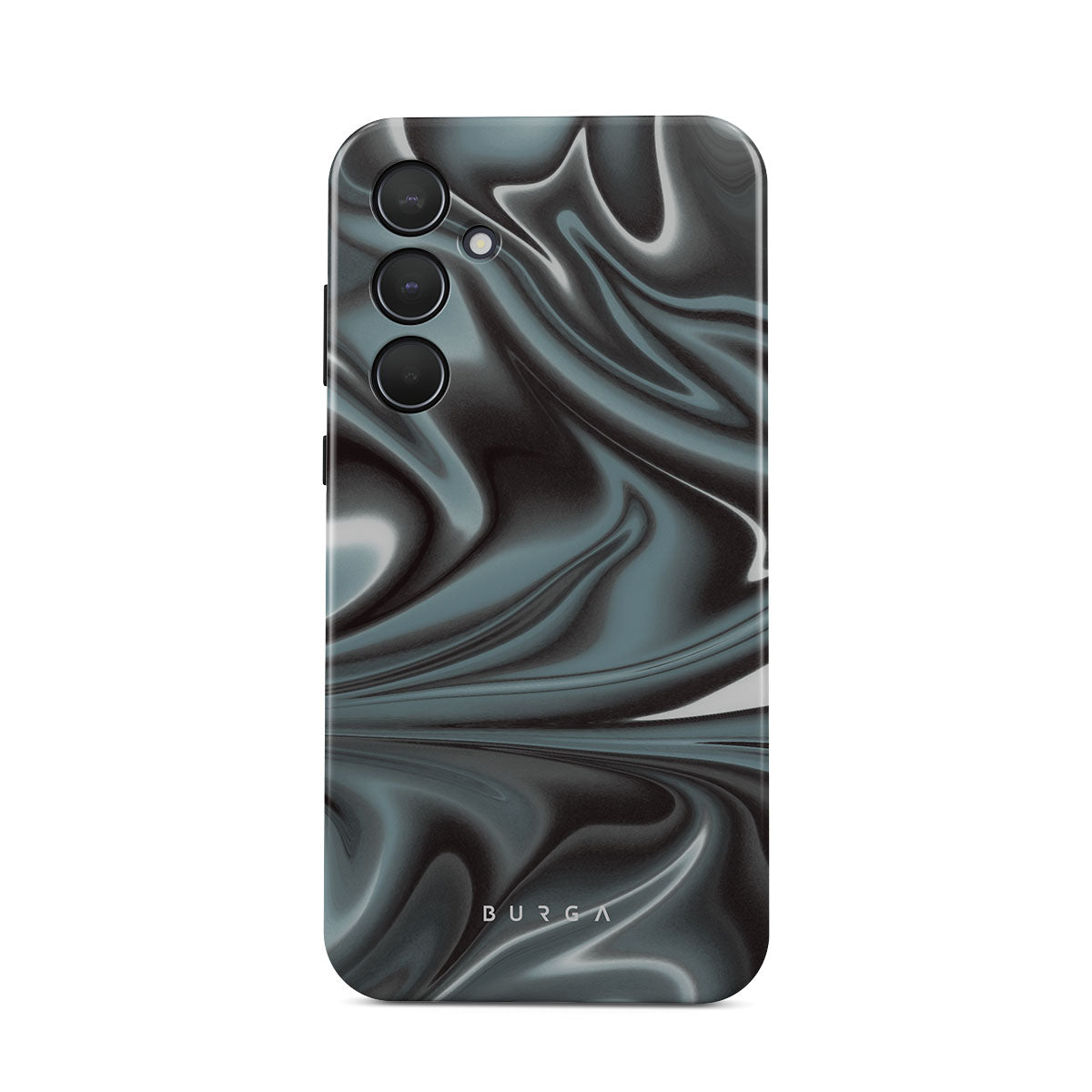 In our Lightning Strike design, black, blue, and white combine to create a daring Samsung Galaxy A35 phone case. The seamless blend of contrasting colors creates a paint-pour-like pattern and a little piece of art that will allow you to transform your phone into one too!