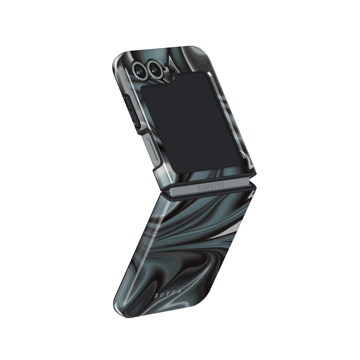 In our Lightning Strike design, black, blue, and white combine to create a daring Samsung Galaxy Z Flip 6 phone case. The seamless blend of contrasting colors creates a paint-pour-like pattern and a little piece of art that will allow you to transform your phone into one too!