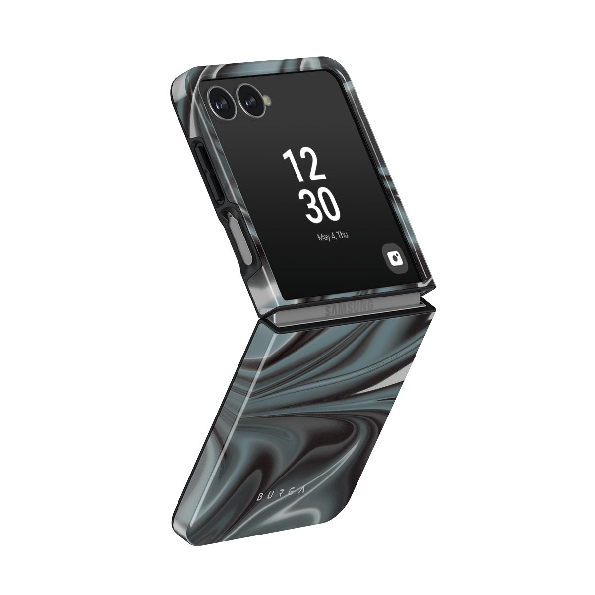 In our Lightning Strike design, black, blue, and white combine to create a daring Samsung Galaxy Z Flip 7 phone case. The seamless blend of contrasting colors creates a paint-pour-like pattern and a little piece of art that will allow you to transform your phone into one too!