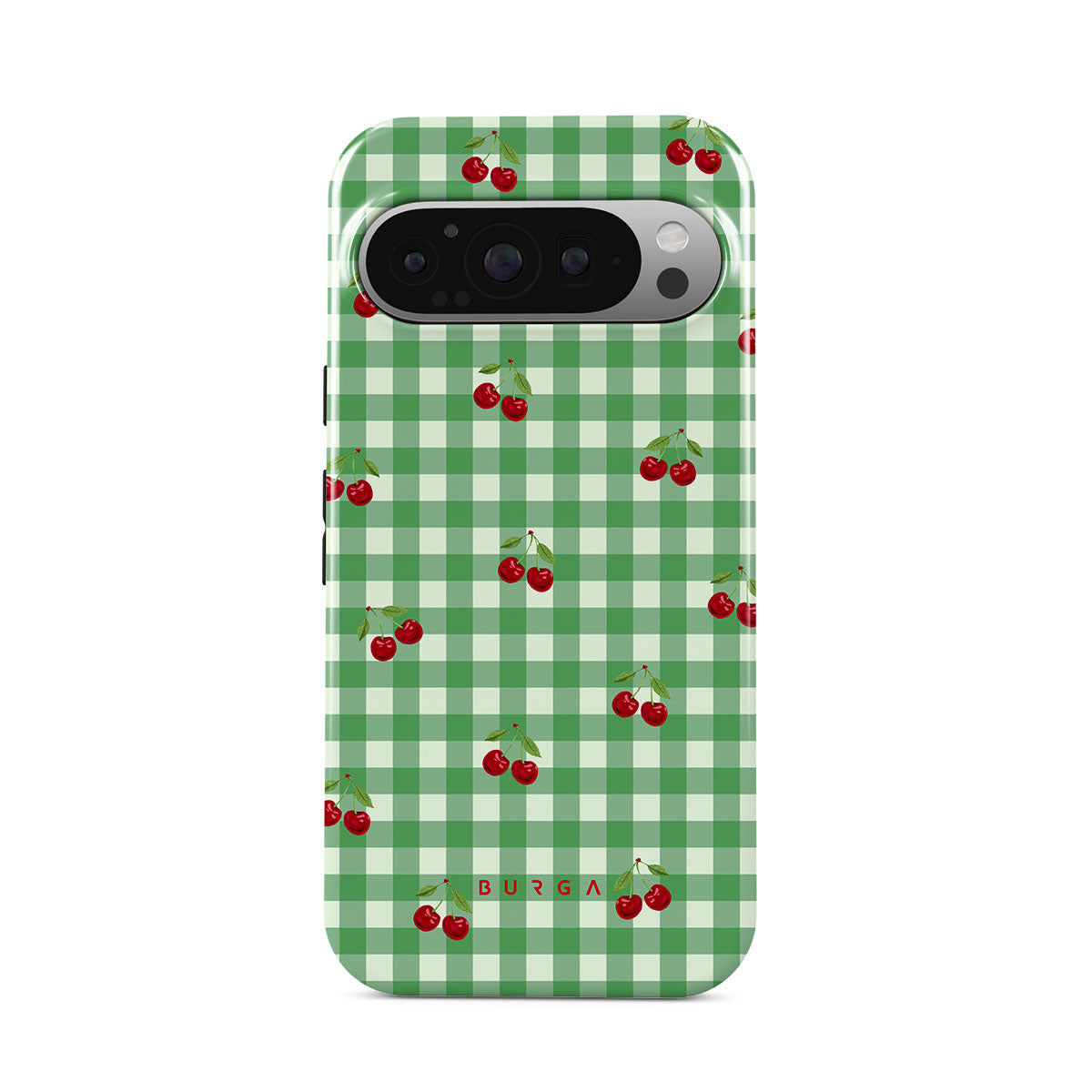 The Little Life Google Pixel 9 Pro phone case design: green checks, simple and true, like a patch of grass under a tree, where you can sit and watch the small world go by, every leaf a chapter in nature’s story.