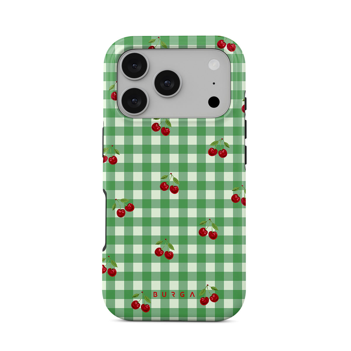 The Little Life iPhone 17 Pro phone case design: green checks, simple and true, like a patch of grass under a tree, where you can sit and watch the small world go by, every leaf a chapter in nature’s story.