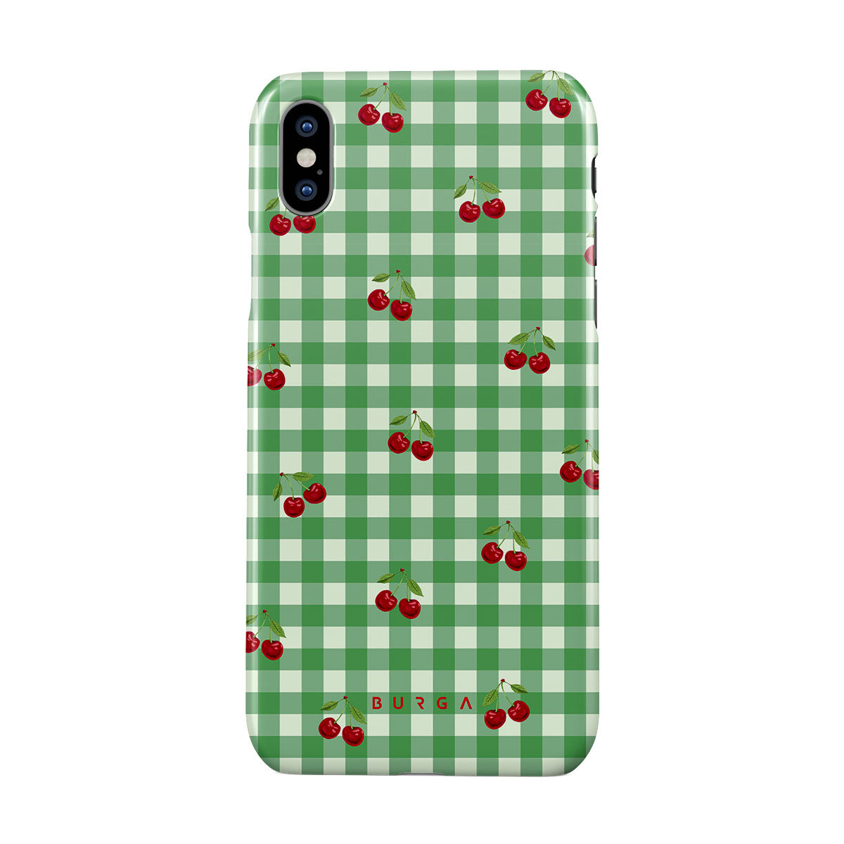 The Little Life iPhone X / XS phone case design: green checks, simple and true, like a patch of grass under a tree, where you can sit and watch the small world go by, every leaf a chapter in nature’s story.
