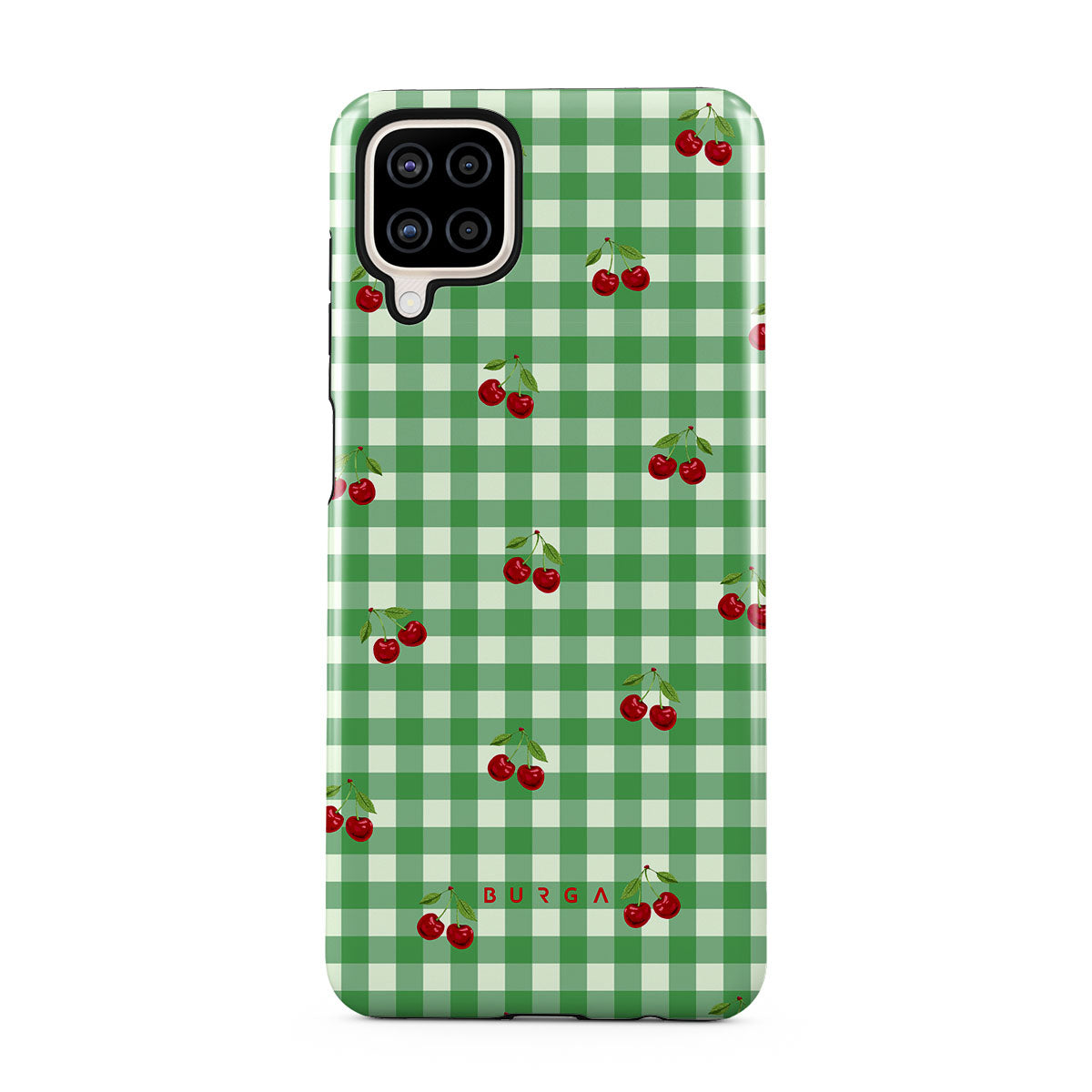 The Little Life Samsung Galaxy A12 4G phone case design: green checks, simple and true, like a patch of grass under a tree, where you can sit and watch the small world go by, every leaf a chapter in nature’s story.