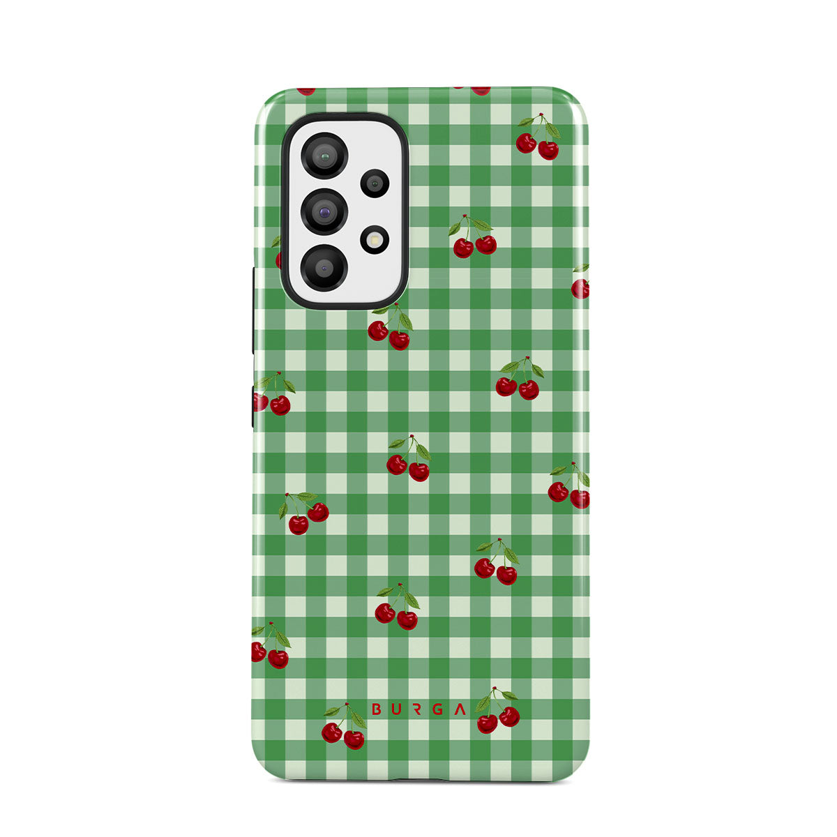 The Little Life Samsung Galaxy A73 phone case design: green checks, simple and true, like a patch of grass under a tree, where you can sit and watch the small world go by, every leaf a chapter in nature’s story.