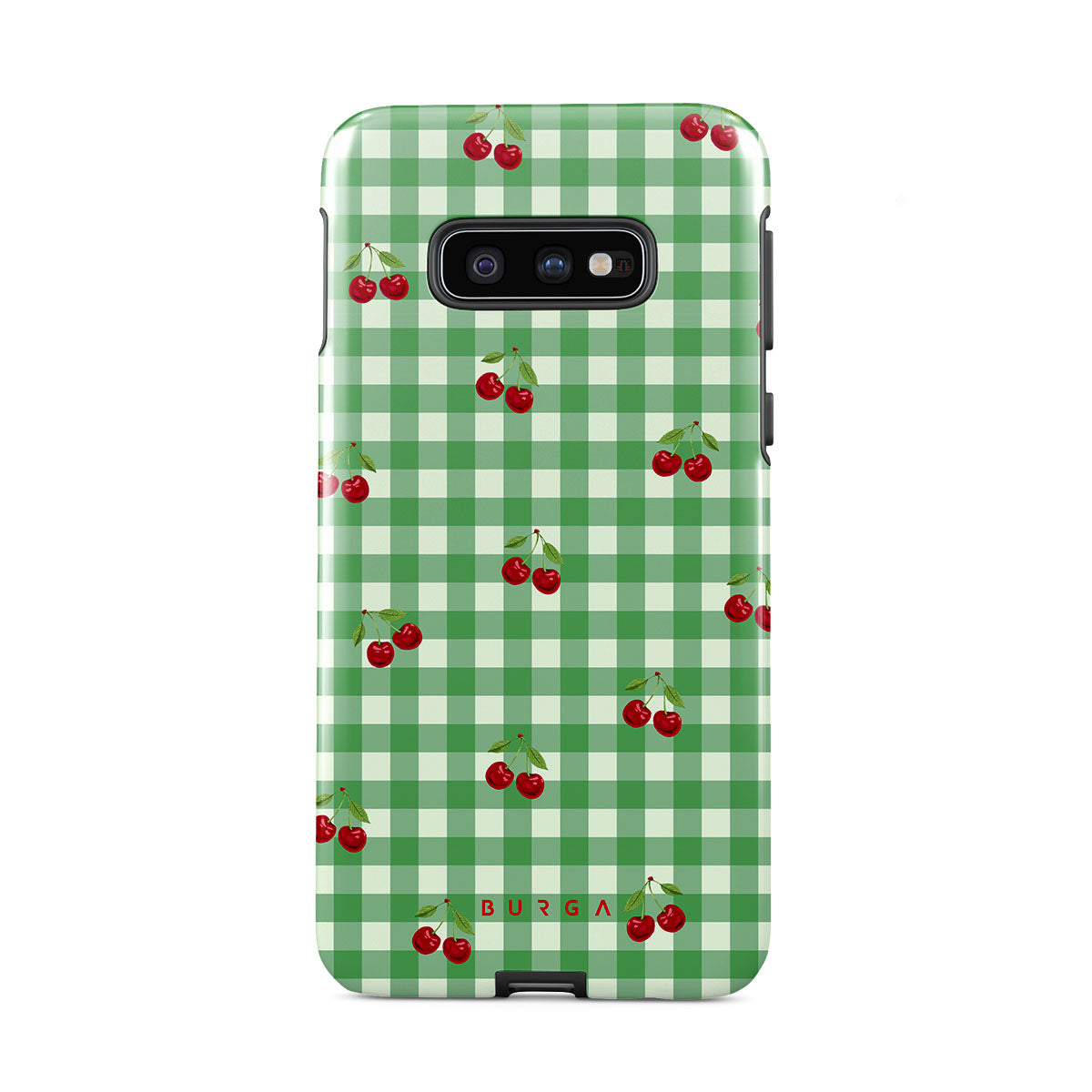 The Little Life Samsung Galaxy S10E phone case design: green checks, simple and true, like a patch of grass under a tree, where you can sit and watch the small world go by, every leaf a chapter in nature’s story.