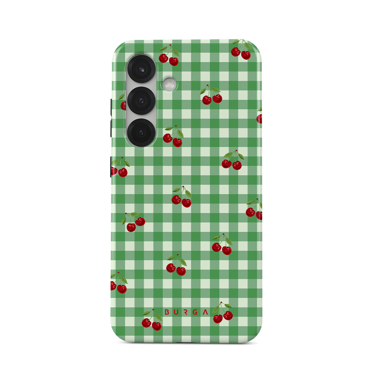 The Little Life Samsung Galaxy S25 phone case design: green checks, simple and true, like a patch of grass under a tree, where you can sit and watch the small world go by, every leaf a chapter in nature’s story.