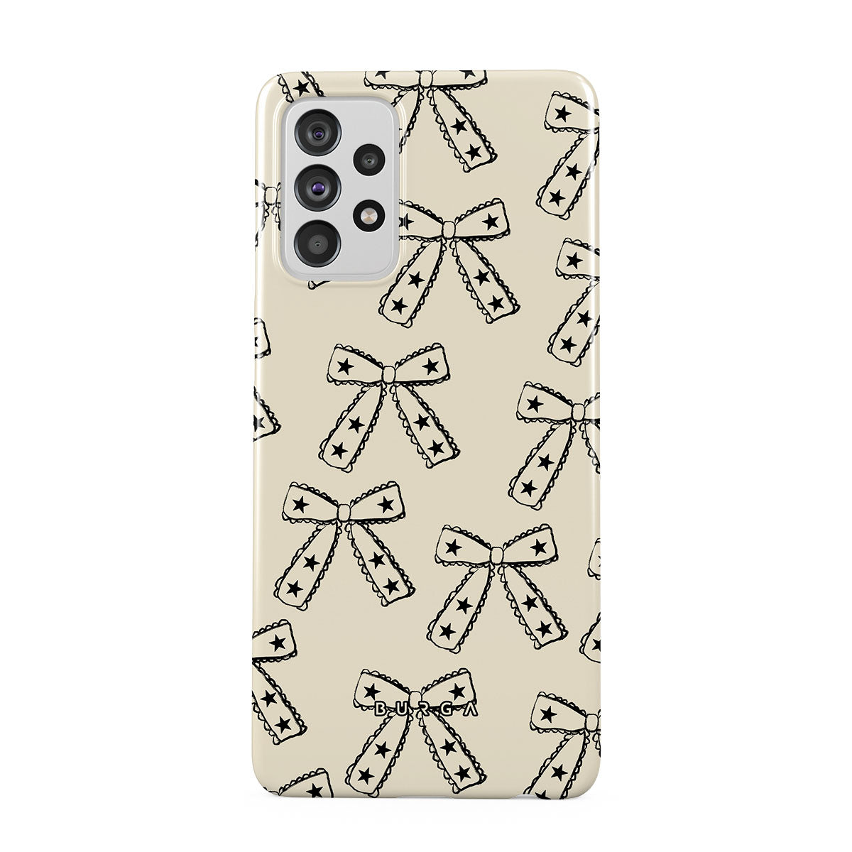 Shine on, Lone Star. Starry bows on a beige background bring a fun twist to your look. This Samsung Galaxy A72 4G / 5G phone case design is ideal for those who march to the beat of their own drum and make their own fashion rules.