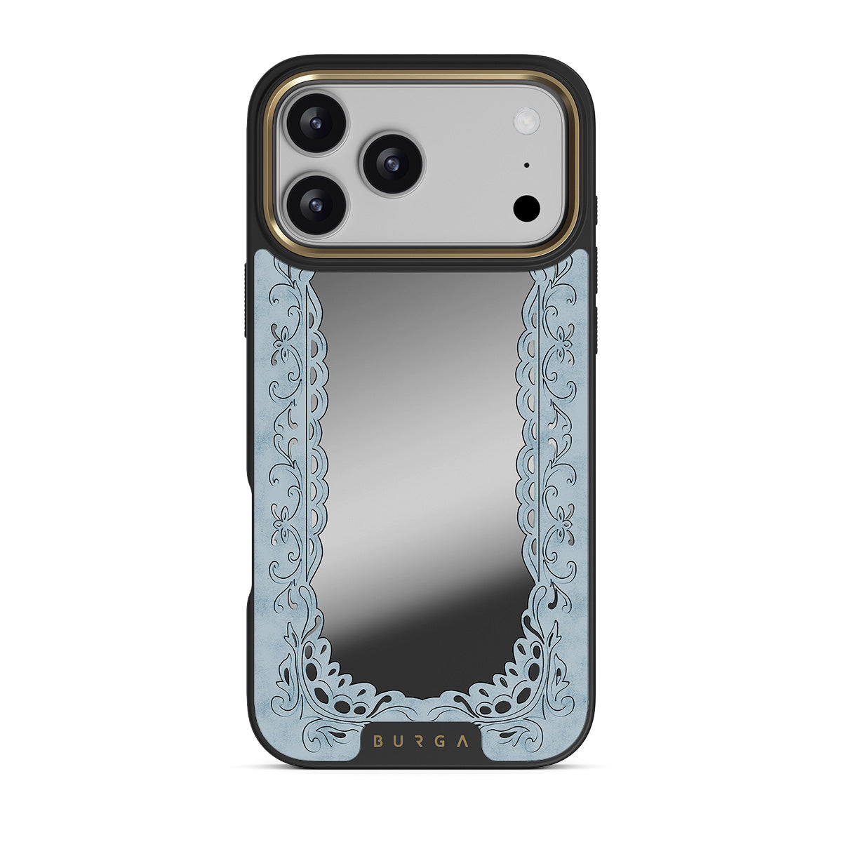 Peer into the Looking Glass iPhone 17 Pro Max phone case design, and something peers back. A delicate blue frame, a mirror surface, and the quiet unease that maybe, just maybe, you're not the only one looking.