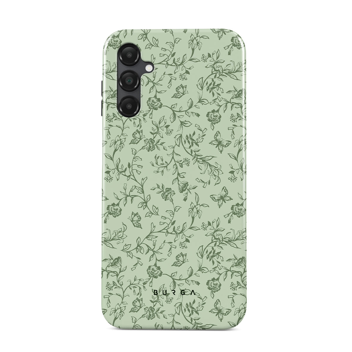 Soft green butterflies, delicate flowers, the kind of dream you wake up from but can’t quite shake. The Lost in Thought Samsung Galaxy A14 5G phone case design lingers like a half-remembered story, floating just out of reach. Was it real? Or just another trick of Wonderland?