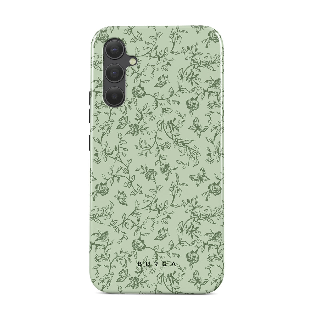 Soft green butterflies, delicate flowers, the kind of dream you wake up from but can’t quite shake. The Lost in Thought Samsung Galaxy A34 phone case design lingers like a half-remembered story, floating just out of reach. Was it real? Or just another trick of Wonderland?