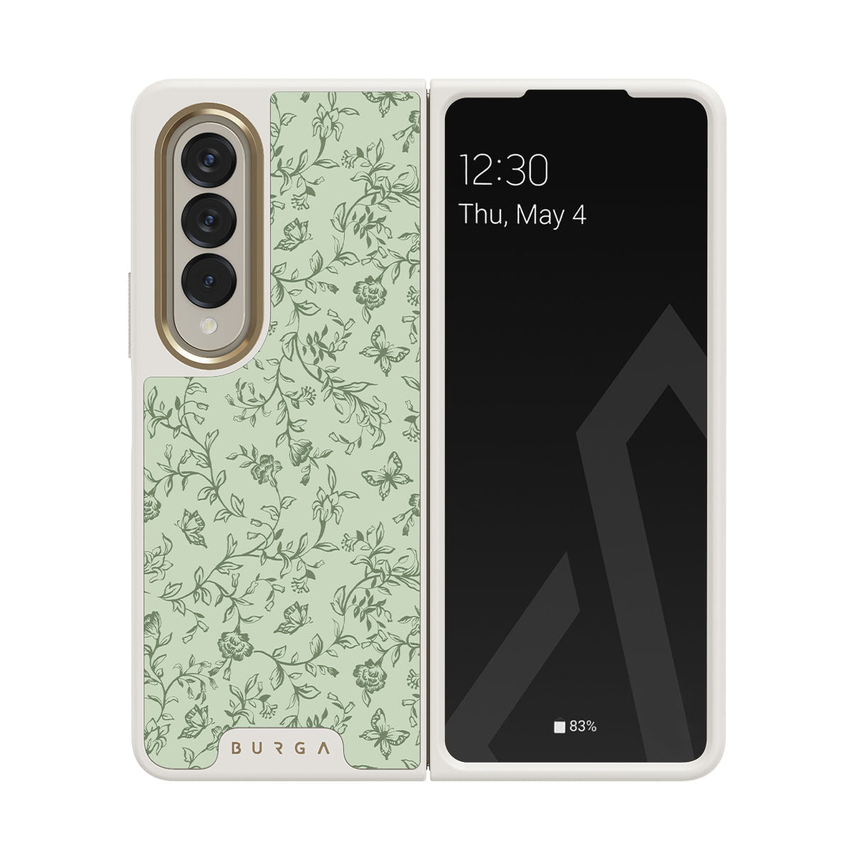 Soft green butterflies, delicate flowers, the kind of dream you wake up from but can’t quite shake. The Lost in Thought Samsung Galaxy Z Fold 4 phone case design lingers like a half-remembered story, floating just out of reach. Was it real? Or just another trick of Wonderland?