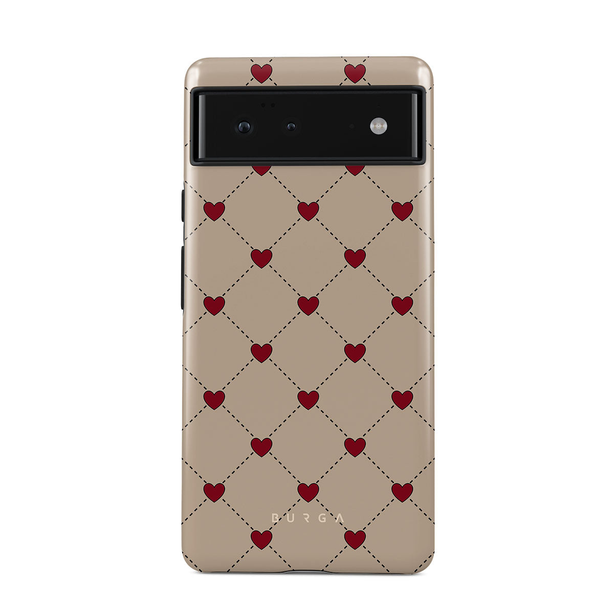 Secrets of the heart whispered between elegant beige diamonds. Every moment, a red heart shimmers—a hidden message, a silent wish, a love letter to the beholder. Discover our Love Letter Google Pixel 6a Case phone case design.