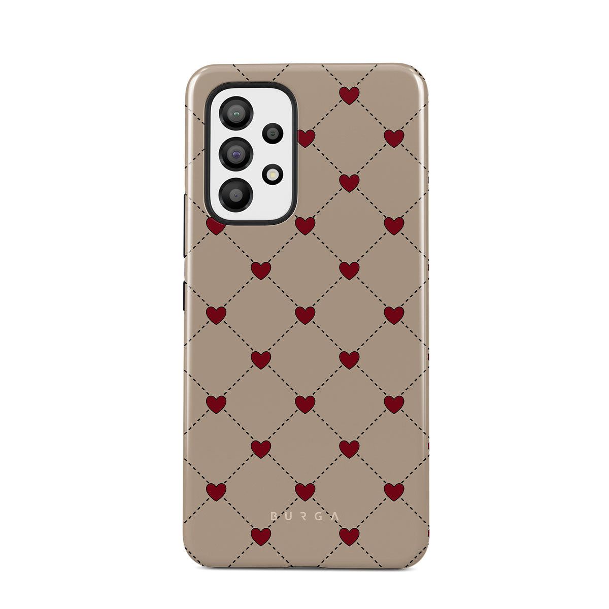 Secrets of the heart whispered between elegant beige diamonds. Every moment, a red heart shimmers—a hidden message, a silent wish, a love letter to the beholder. Discover our Love Letter Samsung Galaxy A33 Case phone case design.