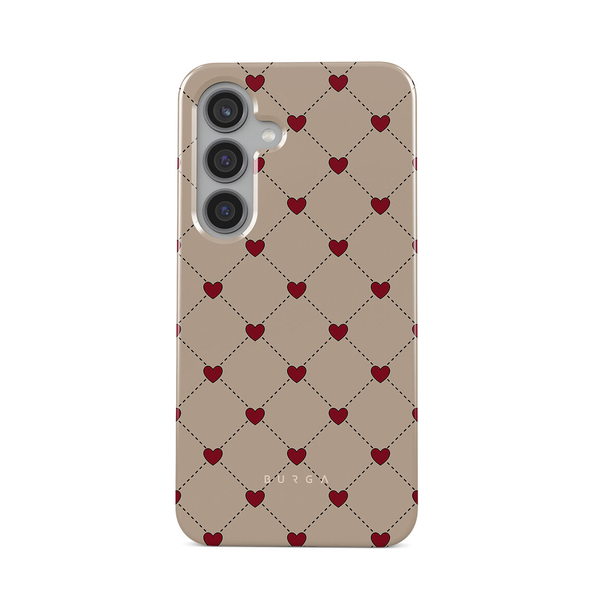 Secrets of the heart whispered between elegant beige diamonds. Every moment, a red heart shimmers—a hidden message, a silent wish, a love letter to the beholder. Discover our Love Letter Samsung Galaxy S24 Case phone case design.