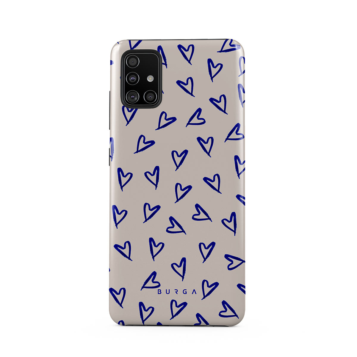 Let your Samsung Galaxy A51 4G phone case be the declaration of passion it deserves with the charming Love Me Right design. The soft powder pink background and playful blue hearts create a whimsical and endearing look, making this case the perfect way to show off your loving yet cheeky side.