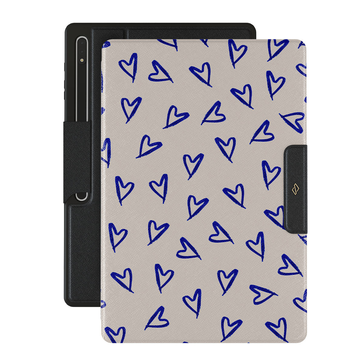 Let your Samsung Galaxy Tab S8 Ultra folio case be the declaration of passion it deserves with the charming Love Me Right design. The soft powder pink background and playful blue hearts create a whimsical and endearing look, making this case the perfect way to show off your loving yet cheeky side.